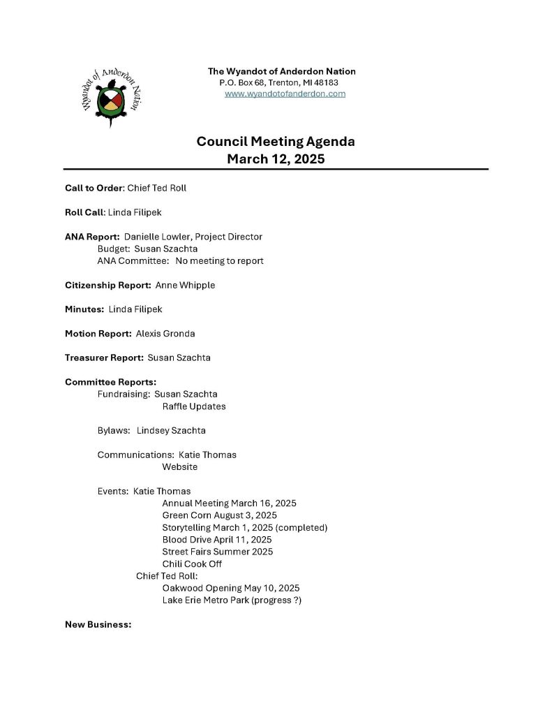 Meeting Minutes available upon request. Please email the Secretary (Linda Filipek) at secretary@wyandots.org.