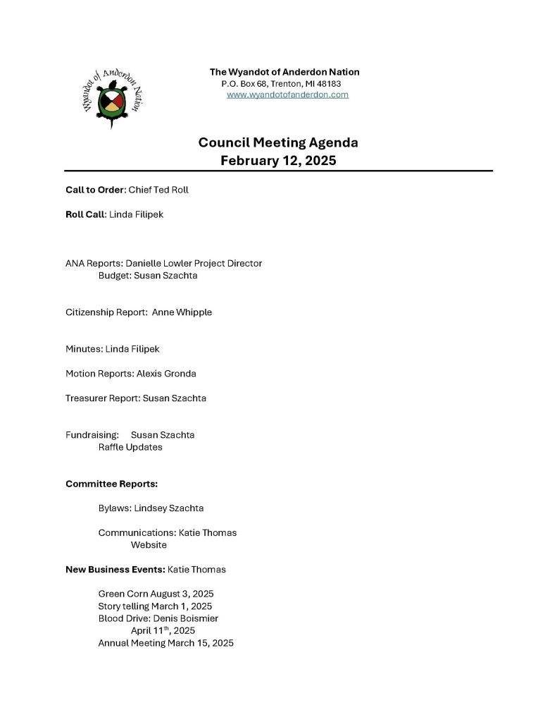 Meeting Minutes available upon request. Please email the Secretary (Linda Filipek) at secretary@wyandots.org.
